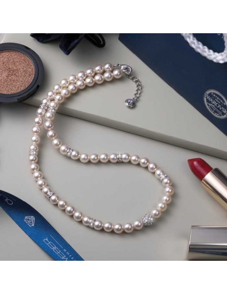 Bi radi malce izpopolnili svojo obleko? Morda želite nadgraditi casual jeans videz? Ogrlica Silk z dolžino 43,6 cm je kot nalašč za to. Zlasti kombinacija kristalov in belih biserov daje koleru zelo elegantno podobo. Modni nakit za prav posebne trenutke.