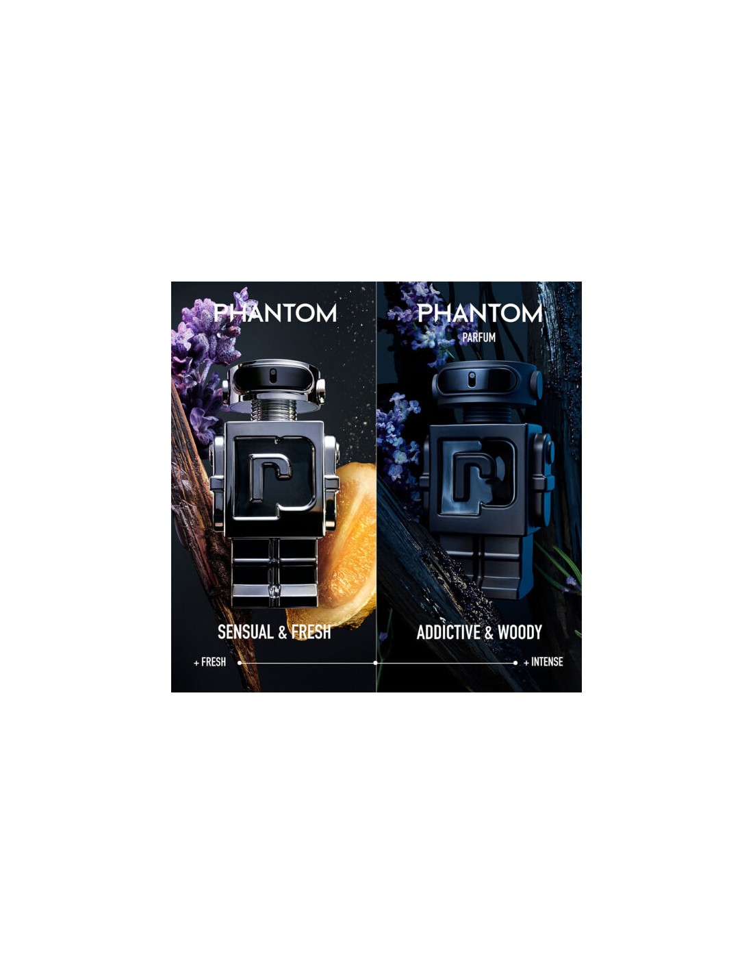Ovijte se v moško dišavo in osvobodite svojo zapeljivo avro, ki se ji bo uprl le malo kdo. Moški parfum Rabanne Phantom Parfum nudi intenzivnost in čutno dišavno sestavo, polno dragocenih, etično pridobljenih surovin, med katerimi boste prepoznali sivko, vaniljo in vetiver.