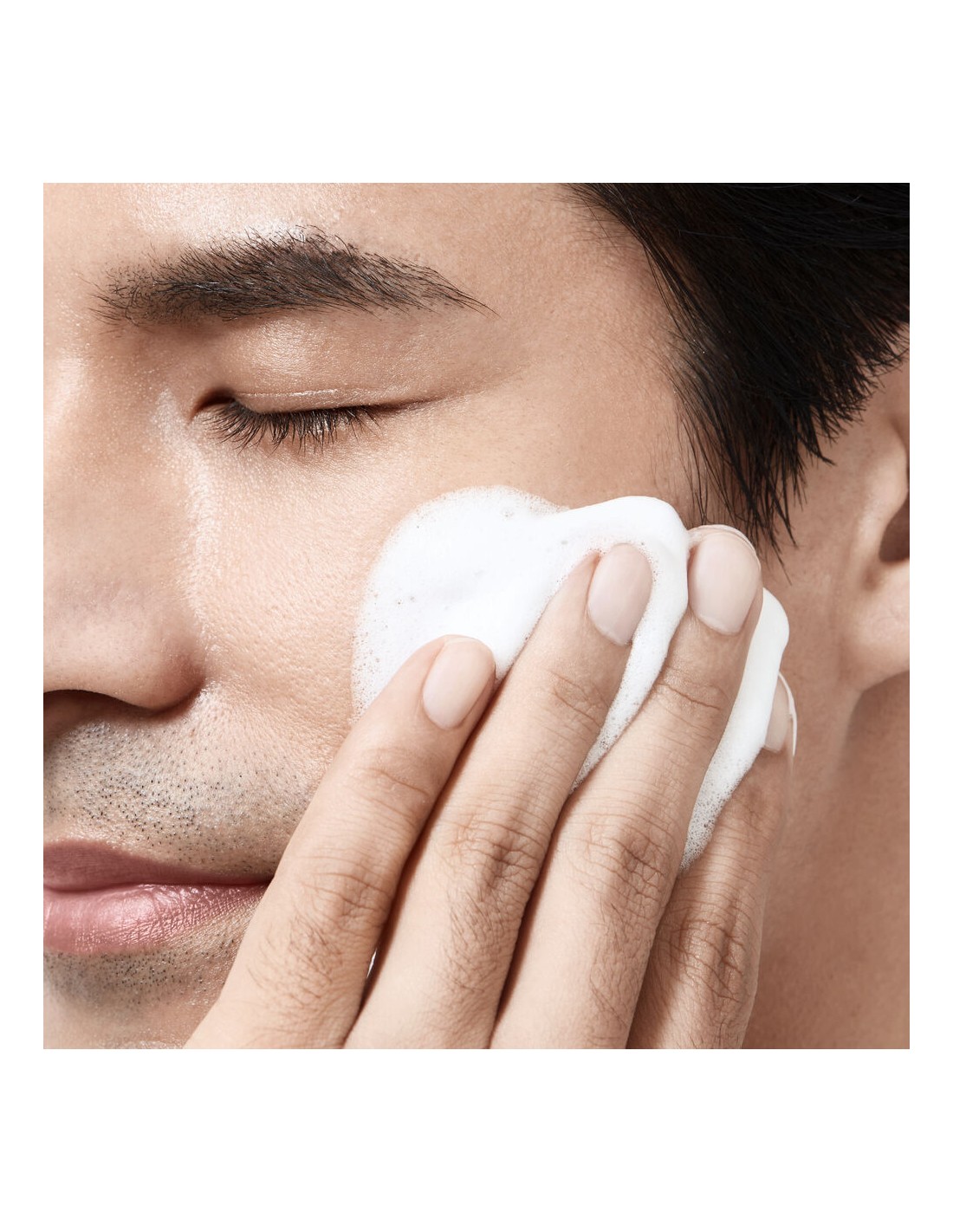 • 82 % moških je ugotovilo, da se izdelek speni v bogato peno s fino teksturo. (brez ličil/jutro)