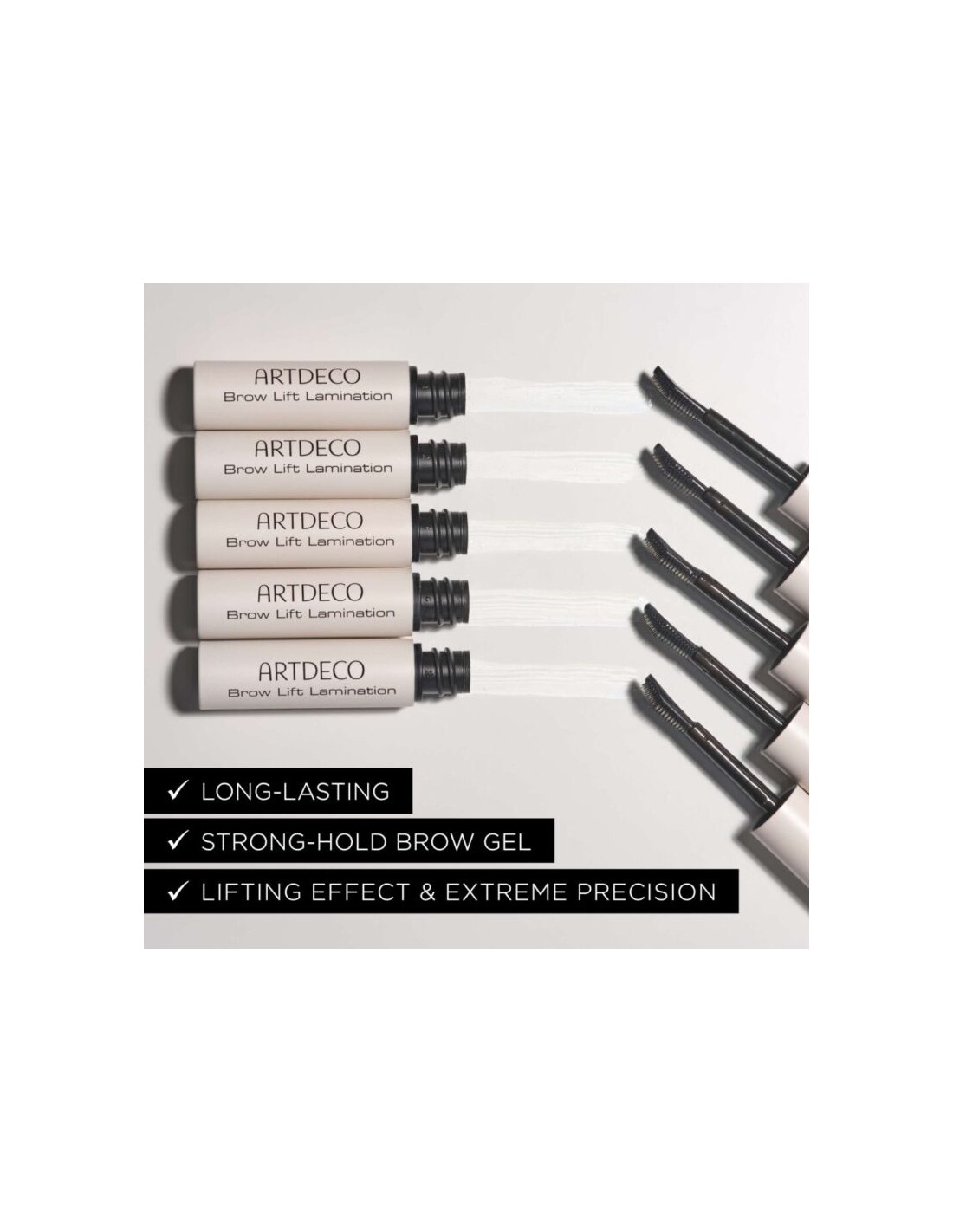 Gel je enostaven za nanos, na obrveh deluje prijetno in brez lepljivosti ustvari brezhiben zaključek. Uživaj v izjemni obstojnosti – brez lepljivosti ali drobljenja gela.