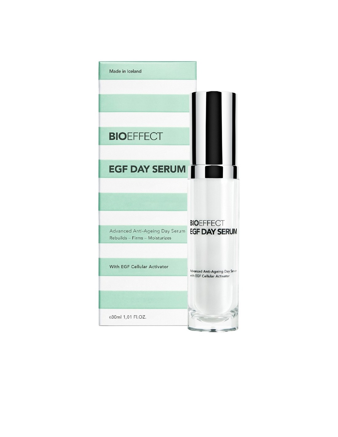 BIOEFFECT EGF DNEVNI SERUM vsebuje EGF, pomemben celični aktivator, ki spodbuja naravno sposobnost samo-obnavljanje kože. Celični aktivator v BIOEFFECT EGF DNEVNI SERUMU je vzgojen v ječmenu na osnovi patentiranega biotehnološkega postopka v rastlinjaku na Islandiji.