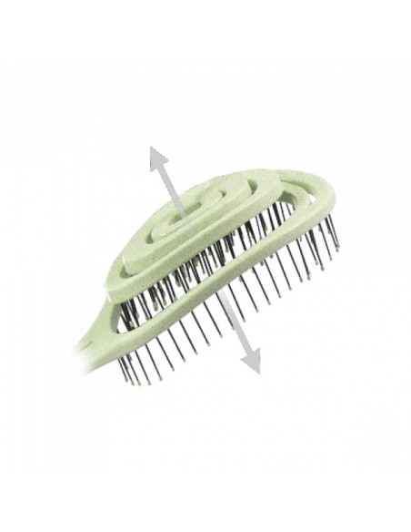 Zahvaljujoč prilagodljivi glavi ščetke je vaše lasišče pomirjujoče masirano. Ker glava krtače prožno popušča, odvisno od gibanja in oblike glave, in se zato prilagaja vašemu gibanju. Priročna krtača nežno drsi skozi lase, ne da bi jih neprijetno vlekla ali napenjala.