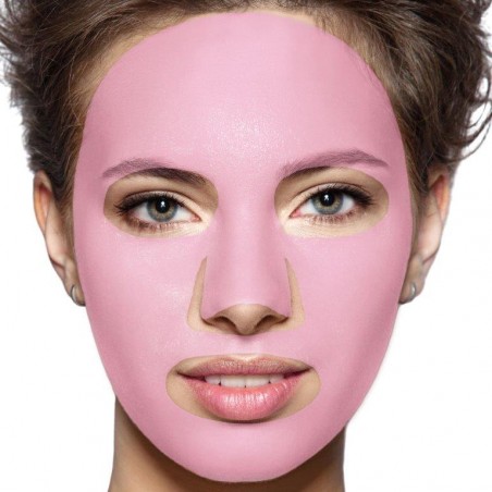 Maska v jagodni barvi objame konture obraza s svilnato mehko površino, kar omogoča idealno absorpcijo aktivnih sestavin v kožo.