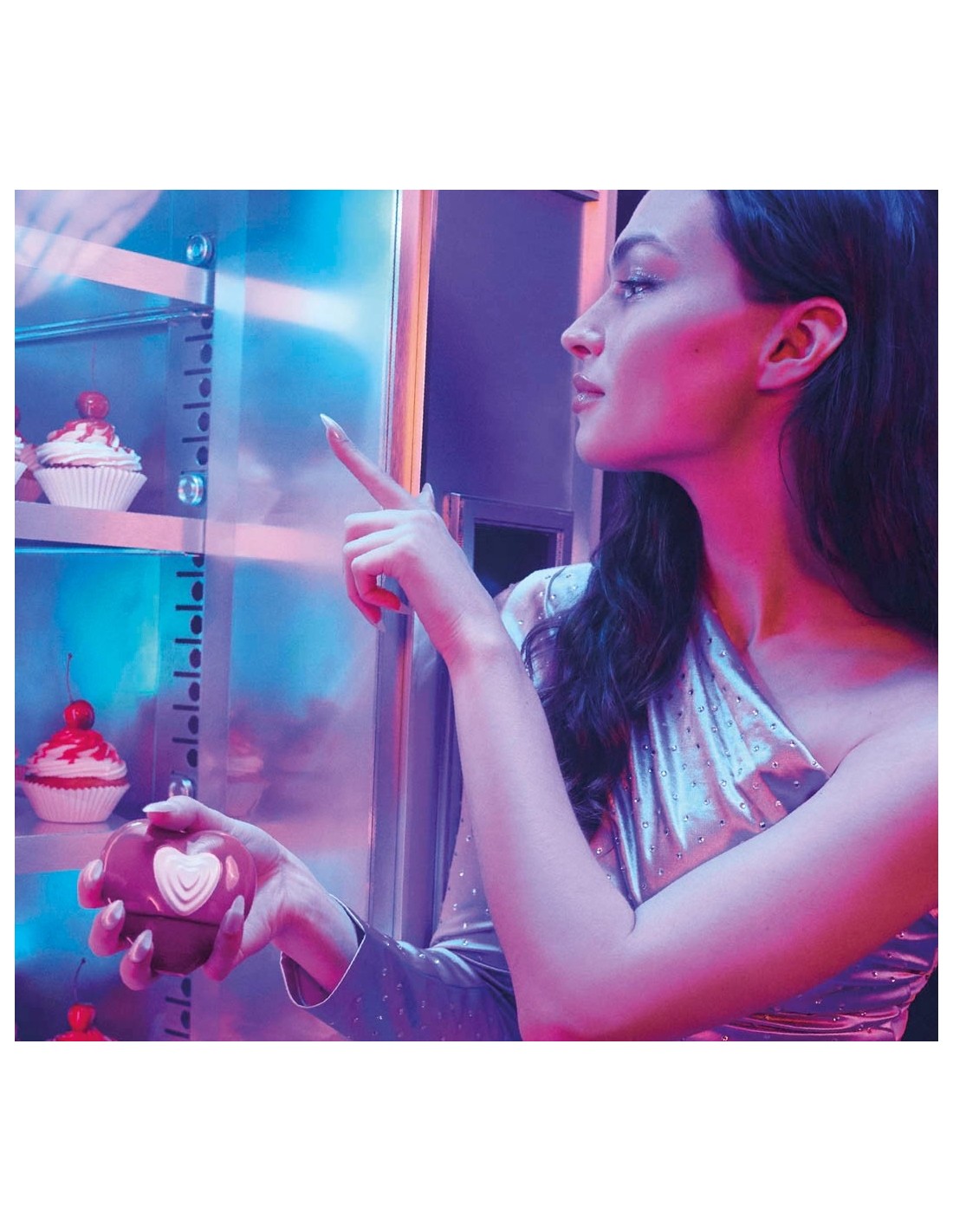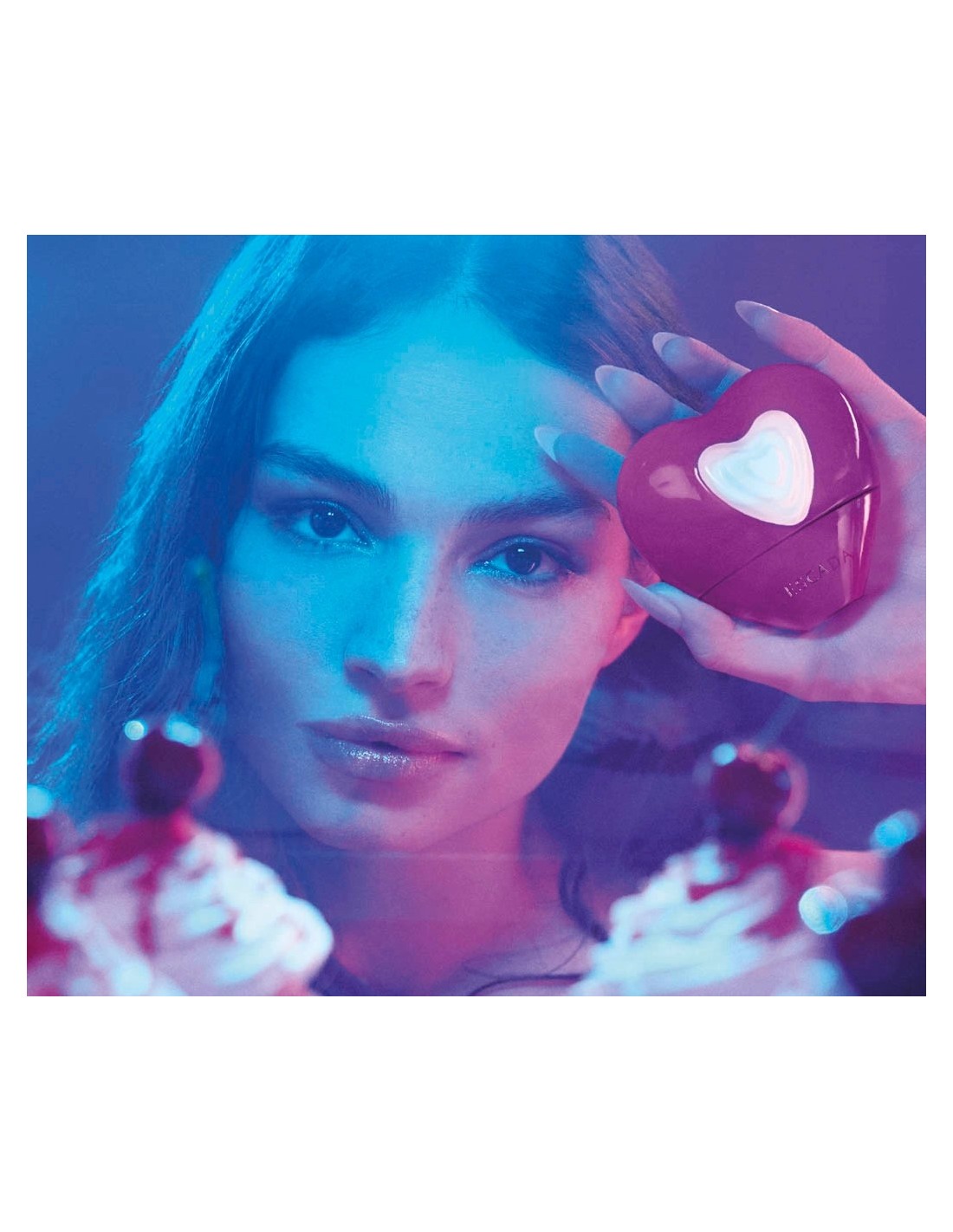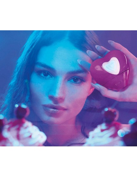 * ikonična steklenička v obliki srca z intenzivno barvo