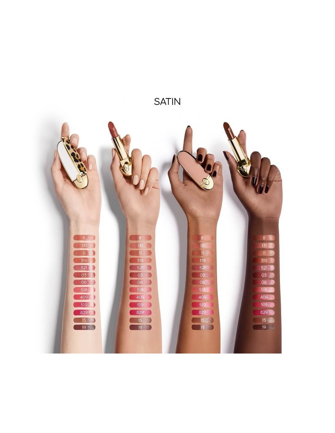 Rouge G, Guerlainova ikonična draguljasta šminka, je bila prenovljena v ultra-negovalni različici v kombinaciji s široko paleto visoko pigmentiranih, dolgo obstojnih odtenkov, ki so na voljo v satenasti ali žametni mat različici. 89 % temelji na negi kože,njegova formula, razvita izključno z voski naravnega izvora, vključuje izvleček olja lilije z gladilnimi in pomlajevalnimi lastnostmi za izjemno udobje.