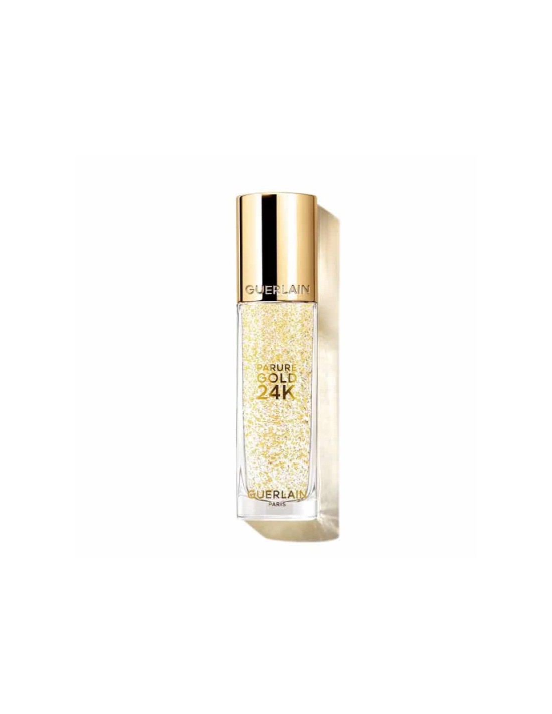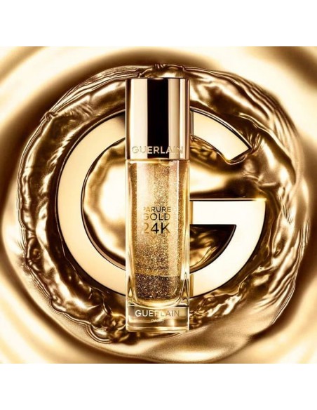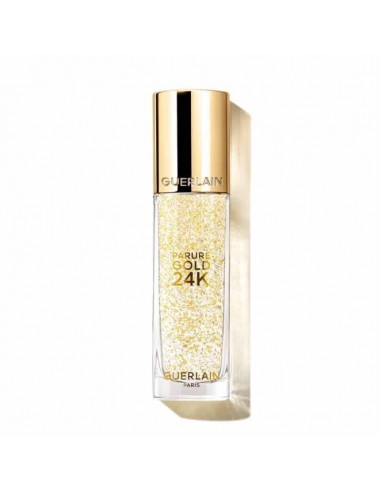 Pripravite svojo kožo na nanos make-upa. Posvetlitvena podlaga GUERLAIN Parure Gold 24K z delci 24-karatnega zlata vaši koži zagotovi bleščeč sijaj, jo takoj poenoti, zgladi njeno teksturo in odpravi nepravilnosti. Poleg tega kožo ves dan vlaži in krepi njeno zaščitno pregrado. Iz dneva v dan je koža obraza bolj enakomerna, polnejša in zasije z mladostnim sijajem.