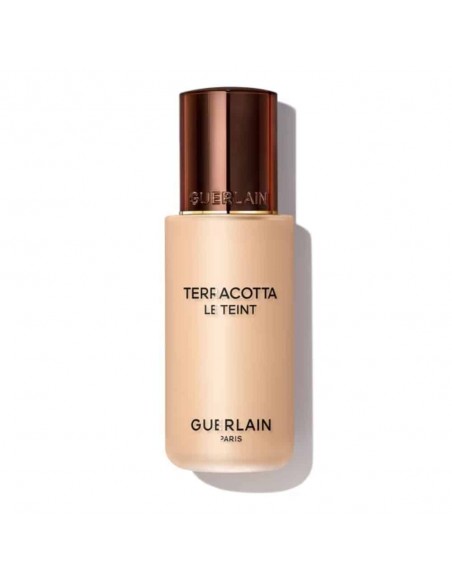 Tekoči puder GUERLAIN Terracotta Le Teint Glow združuje lahkotnost pudra in moč tekoče podlage, zagotavlja naraven, sijoč mat zaključek ter 24-urno obstojnost in vlaženje. Njegova ultra lahka tekstura se popolnoma zlije s kožo, jo naredi svežo in sijočo, ne maši por ter omogoča plastenje za srednje do popolno prekrivanje.