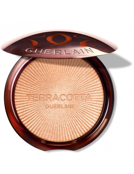 Osupljiva zlata barva kot po sončnem vzhodu in pred sončnim zahodom. Takšno vaši koži podari posvetlitveni bronz puder GUERLAIN Terracotta Luminizer. Vsebuje naravne pigmente z izjemno finim sijajem, ki se prilagodijo tonu vaše kože in ustvarijo naraven učinek. Njegova sestava je obogatena z vlažilnim arganovim oljem iz Maroka, ki zagotavlja dolgotrajno obstojnost in celodnevno udobje.