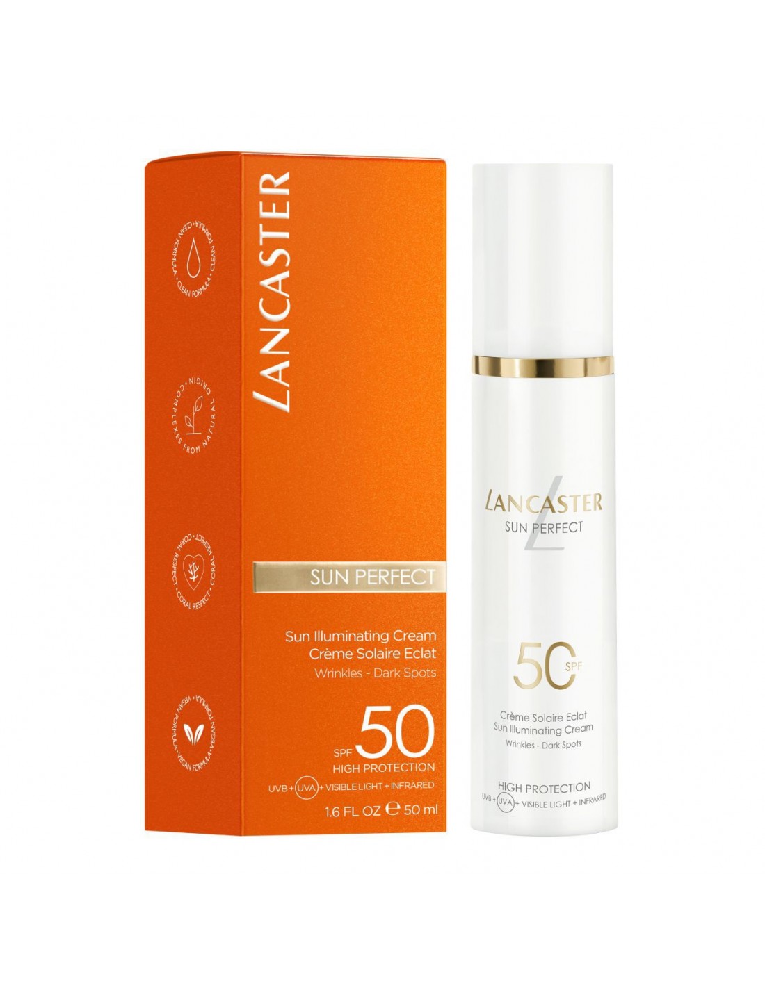 Zaščitite svojo kožo obraza ne le pred znaki staranja, ampak tudi pred vsemi vrstami sončnega sevanja. Dnevna krema proti gubam Lancaster Sun Perfect Illuminating Cream zagotavlja visoko stopnjo zaščite pred soncem, obenem pa zmanjšuje in odpravlja gubice ter temne madeže, ki so tako pogosto posledica škodljivega sončnega sevanja.