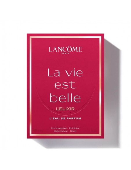 Tudi v obliki stekleničke La vie est belle L'Elixir se skriva sporočilo. V sebi nosi preplet ženstvenosti, ki jo predstavljajo krivulje kristalnega nasmeha, in poguma, ki ga simbolizira ostra silhueta stekla. Ste dišavo že porabili? Ne obupujte! Zdaj lahko to mojstrovino na svojih policah razstavljate še dlje – stekleničko je mogoče ponovno napolniti, zato vam bo nudila skoraj neskončno veselje!