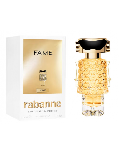 Zagoreti kot novorojena zvezda na pariškem nebu vam omogoča ženska parfumska voda Rabanne Fame Intense. Razkošna cvetlična dišava z lesnimi baznimi notami svojo uporabnico obda v drzno avro osupljive ženstvenosti, v kateri se utopijo vse skrbi in negotovosti. S to iskrivo, pikantno dišavo ne bo nič nemogoče – vse boste imeli na dosegu roke.