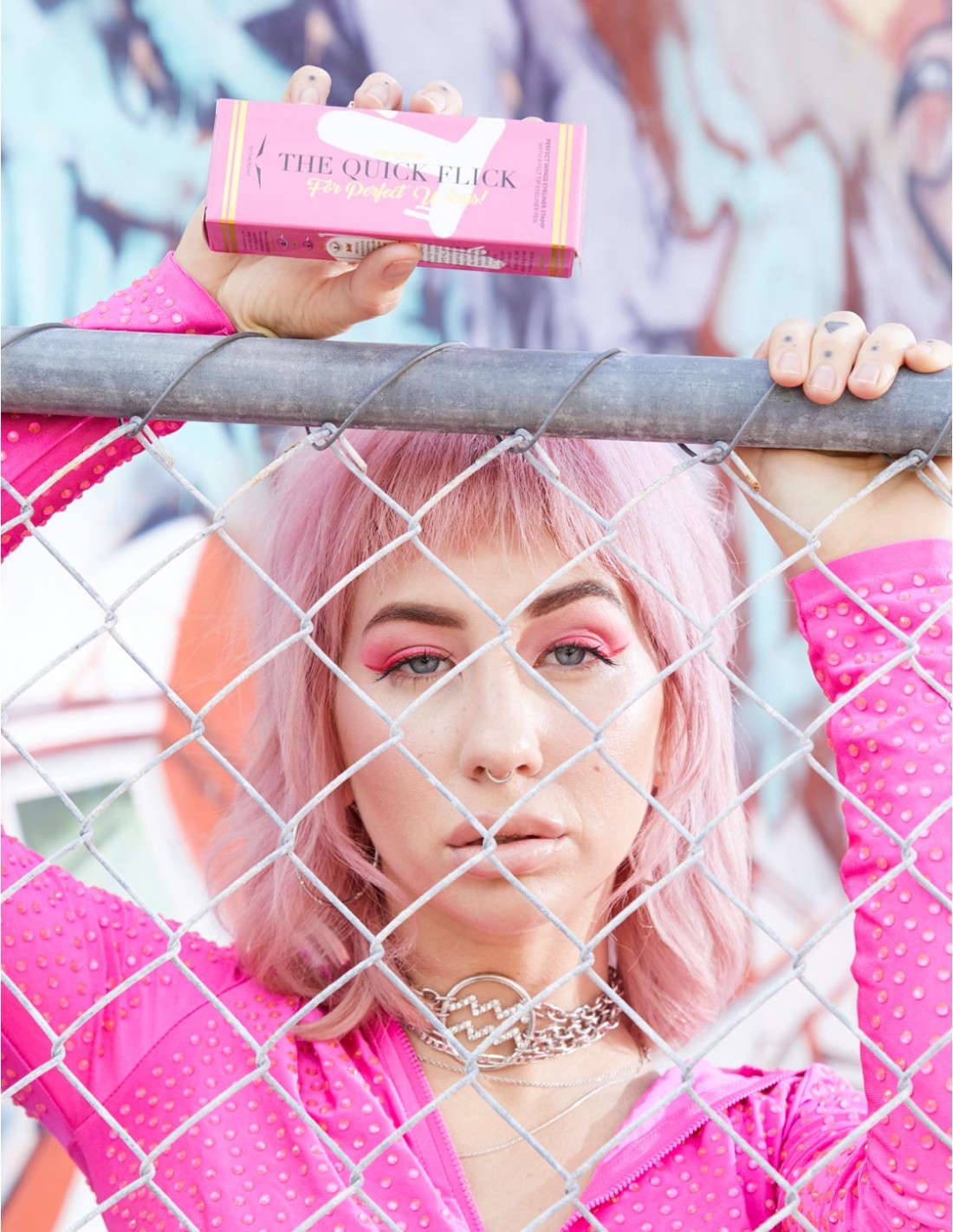 THE QUICK FLICK – za levo in desno oko. Omogoča prilagojen zaključek krila za vsako oko. Obe štampilki vsebujeta nalivno pero za oči iz filca za dokončanje videza.