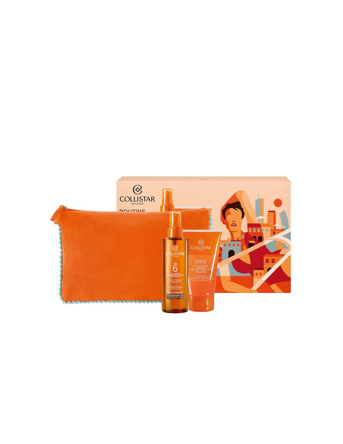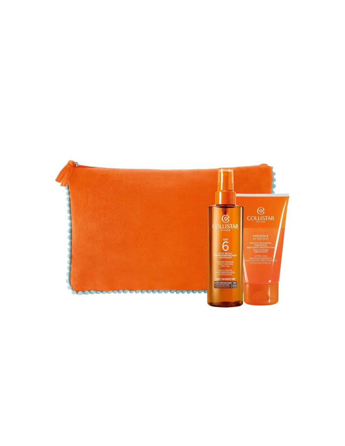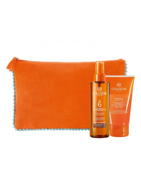 DARILNI SET COLLISTAR: Supertanning dry oil SPF6 + After sun shower shampoo 150 ml + torbica
